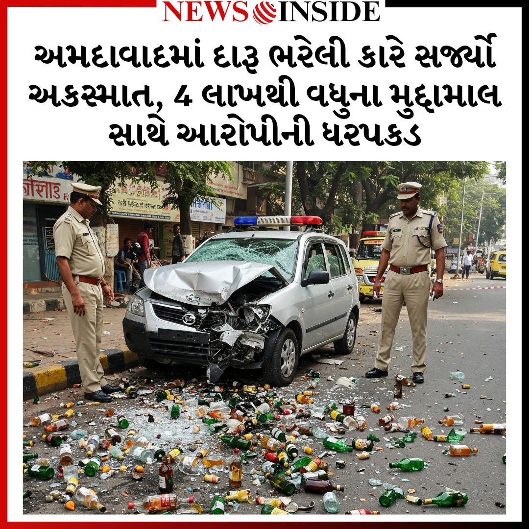 અમદાવાદમાં દારૂ ભરેલી કારે સર્જ્યો અકસ્માત, 4 લાખથી વધુના મુદ્દામાલ સાથે આરોપીની ધરપકડ