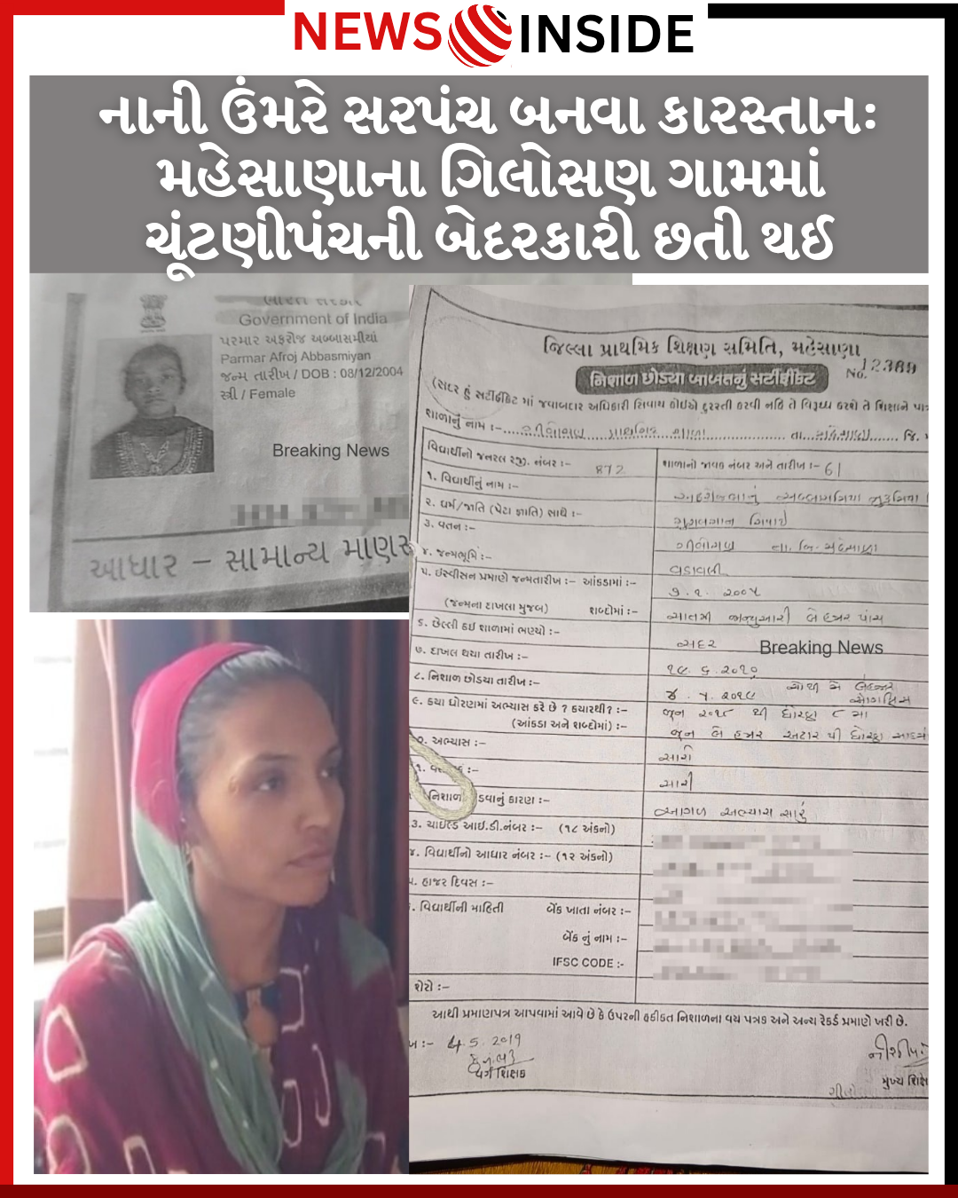 પ્રાપ્ત માહિતી અનુસાર, અફરોજબાનું અબ્બાસમિયા સિપાઈ નામની યુવતીએ ગિલોસણ ગ્રામ પંચાયતની સરપંચ પદ માટે ઉમેદવારી નોંધાવી હતી અને તેમાં વિજય પણ મેળવ્યો હતો. જોકે, આશ્ચર્યજનક રીતે, યુવતીની ઉંમર 21 વર્ષ પૂરી ન હોવા છતાં તેને સરપંચ પદ માટે લાયક ઠેરવવામાં આવી હતી.