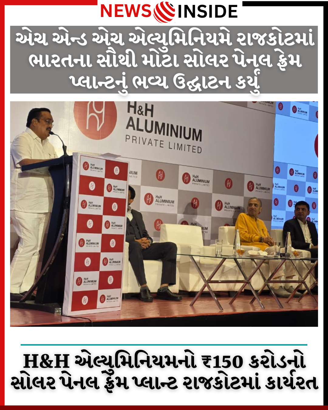 એચ એન્ડ એચ એલ્યુમિનિયમના ડિરેક્ટર શ્રી ઉત્તમ પટેલે જણાવ્યું હતું કે, “આ ભારતનો સૌથી મોટો અને સૌથી અદ્યતન સોલર પેનલ એલ્યુમિનિયમ ફ્રેમ પ્લાન્ટ હશે અને અમે લગભગ એક વર્ષના રેકોર્ડ સમયમાં આને સ્થાપિત કરવામાં સફળ રહ્યા છીએ.” તેમણે ઉમેર્યું હતું કે, “હાલમાં, ભારત 90-95% એલ્યુમિનિયમ સોલાર પેનલ ફ્રેમની આયાત કરે છે. આ પ્લાન્ટ સાથે અમે મેક ઇન ઇન્ડિયા પહેલને ટેકો આપવા અને સૌર ઉર્જા ક્ષેત્રમાં સ્થાનિક ઉત્પાદનને પ્રોત્સાહન આપવા તરફ એક અર્થપૂર્ણ પગલું ભરી રહ્યા છીએ.” આ પ્લાન્ટ 300 થી વધુ લોકો માટે રોજગારીની તકો ઊભી કરશે, જે સ્થાનિક અર્થતંત્રને વેગ આપશે. જૂન 2025 માં ટ્રાયલ ઉત્પાદન શરૂ થઈ ગયું છે અને આગામી એક મહિનામાં વાણિજ્યિક ઉત્પાદન શરૂ થવાની અપેક્ષા છે.