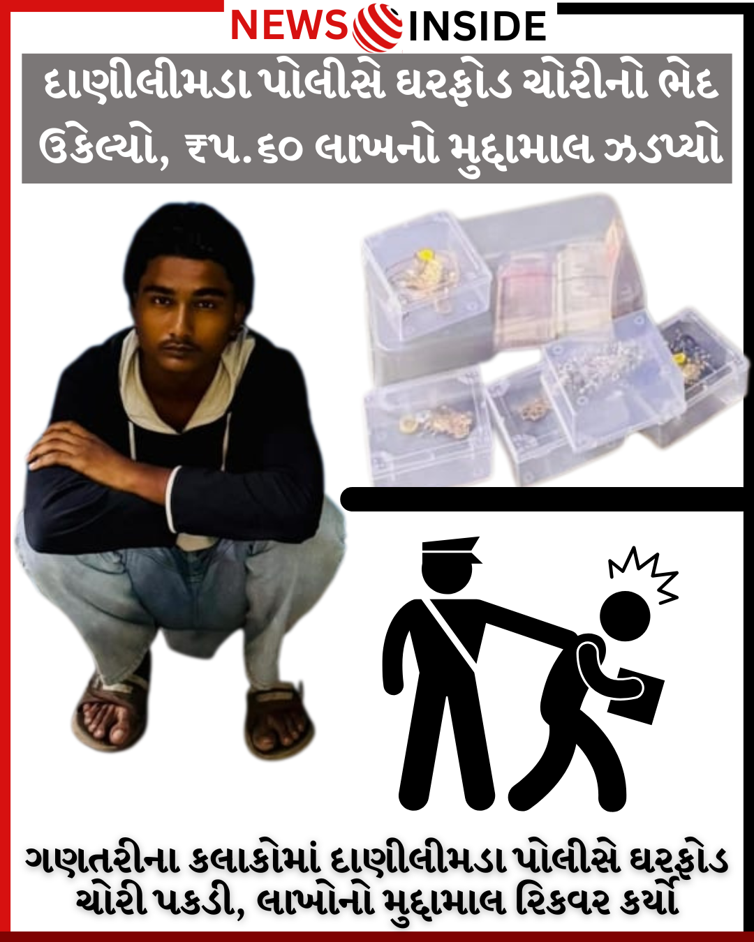 ગણતરીના કલાકોમાં દાણીલીમડા પોલીસે ઘરફોડ ચોરી પકડી, લાખોનો મુદ્દામાલ રિકવર કર્યો
