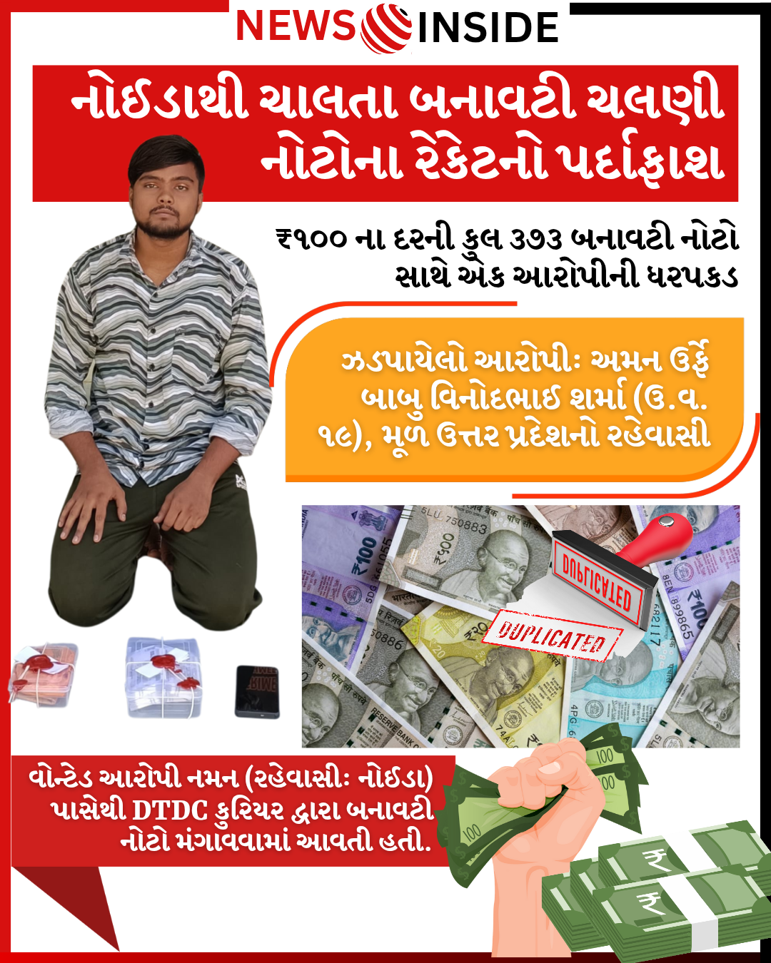 અમદાવાદ શહેર ક્રાઈમબ્રાન્ચે એક મોટા ગુનાહિત રેકેટનો પર્દાફાશ કર્યો છે. આ રેકેટ નોઈડાથી ચાલતું હતું અને તેમાં બનાવટી ભારતીય ચલણી નોટો બજારમાં ફરતી કરવામાં આવતી હતી, જે દેશના અર્થતંત્રને નબળું પાડવાનો પ્રયાસ હતો.