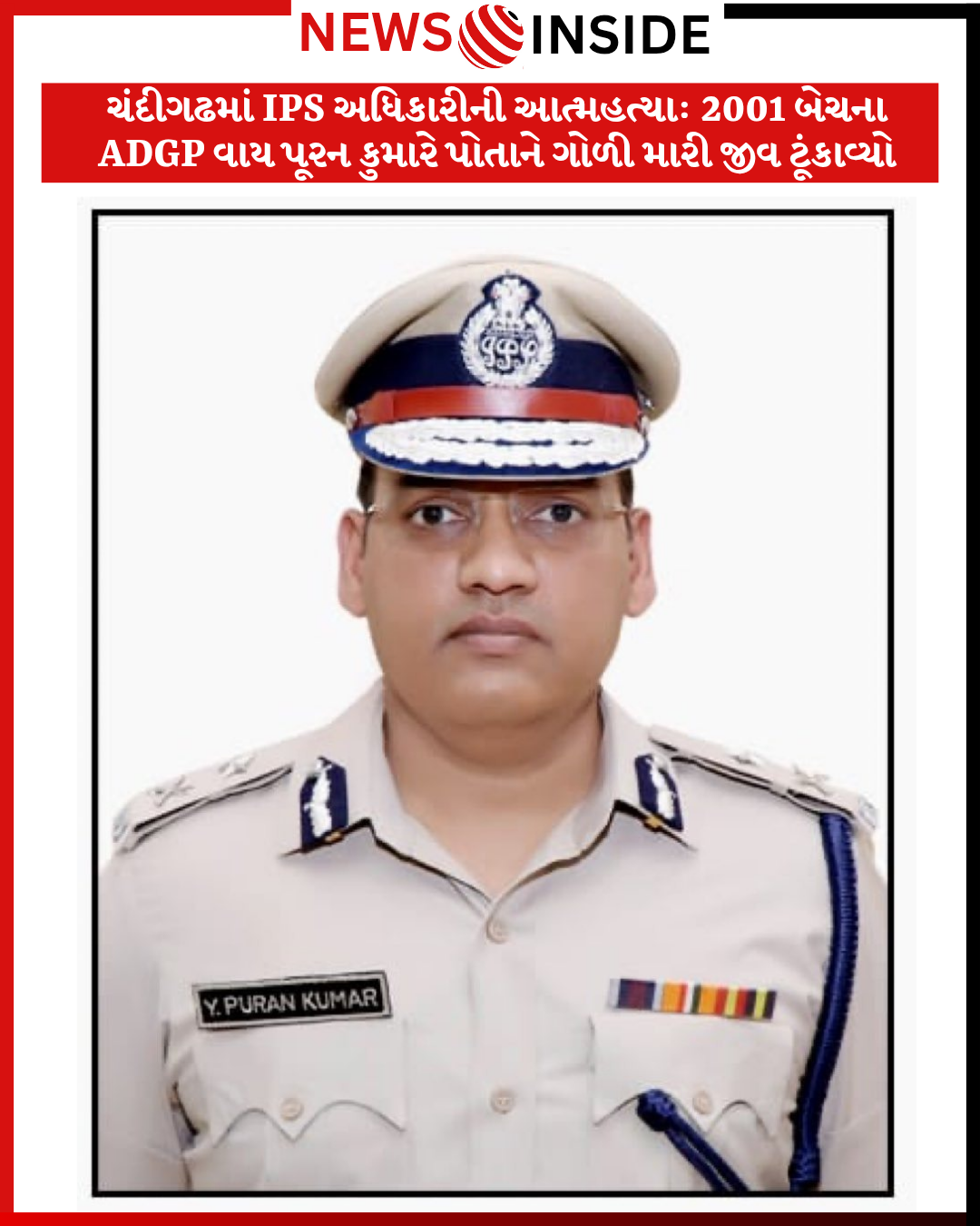 પ્રાપ્ત માહિતી અનુસાર, 2001 બેચના IPS અધિકારી વાય પૂરન કુમારે ચંદીગઢમાં પોતાને ગોળી મારીને જીવન ટૂંકાવ્યું છે. આત્મહત્યાના કારણો વિશે હજુ સુધી કોઈ સત્તાવાર માહિતી મળી નથી.