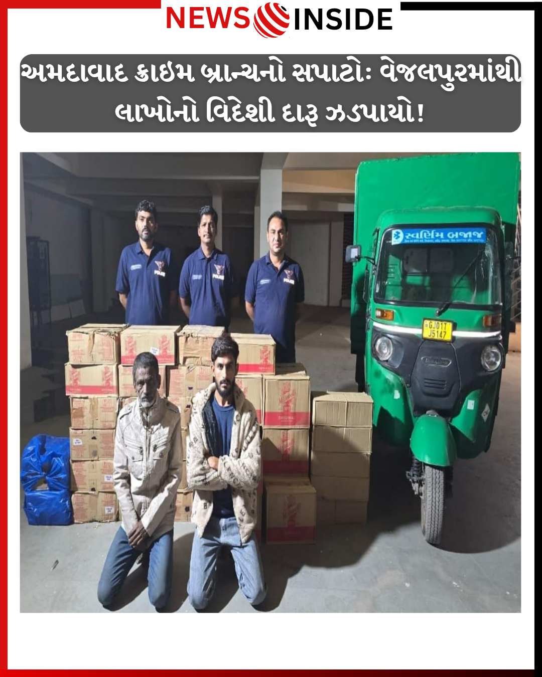 અમદાવાદ: અમદાવાદ શહેરની ક્રાઇમ બ્રાન્ચે વેજલપુર વિસ્તારમાં મોટી કાર્યવાહી કરીને ભારતીય બનાવટના વિદેશી દારૂનો જથ્થો પકડી પાડ્યો છે. આ કેસમાં બે આરોપીઓની ધરપકડ પણ કરવામાં આવી છે.