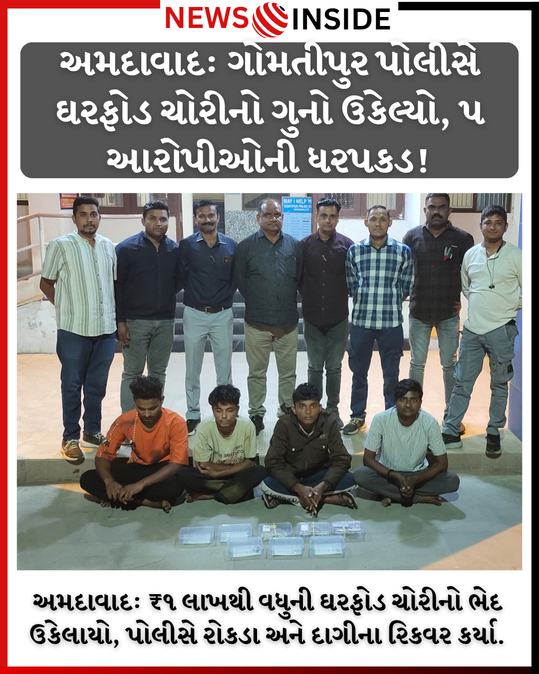 બાતમી એવી હતી કે “ગોમતીપુર કાળીદાસ મીલ કંપાઉન્ડમાં પાંચ ઈસમો ભેગા મળીને ચોરી કરેલ રોકડ રકમ અને ઘરેણાંની વહેંચણી કરી રહ્યા છે.”.