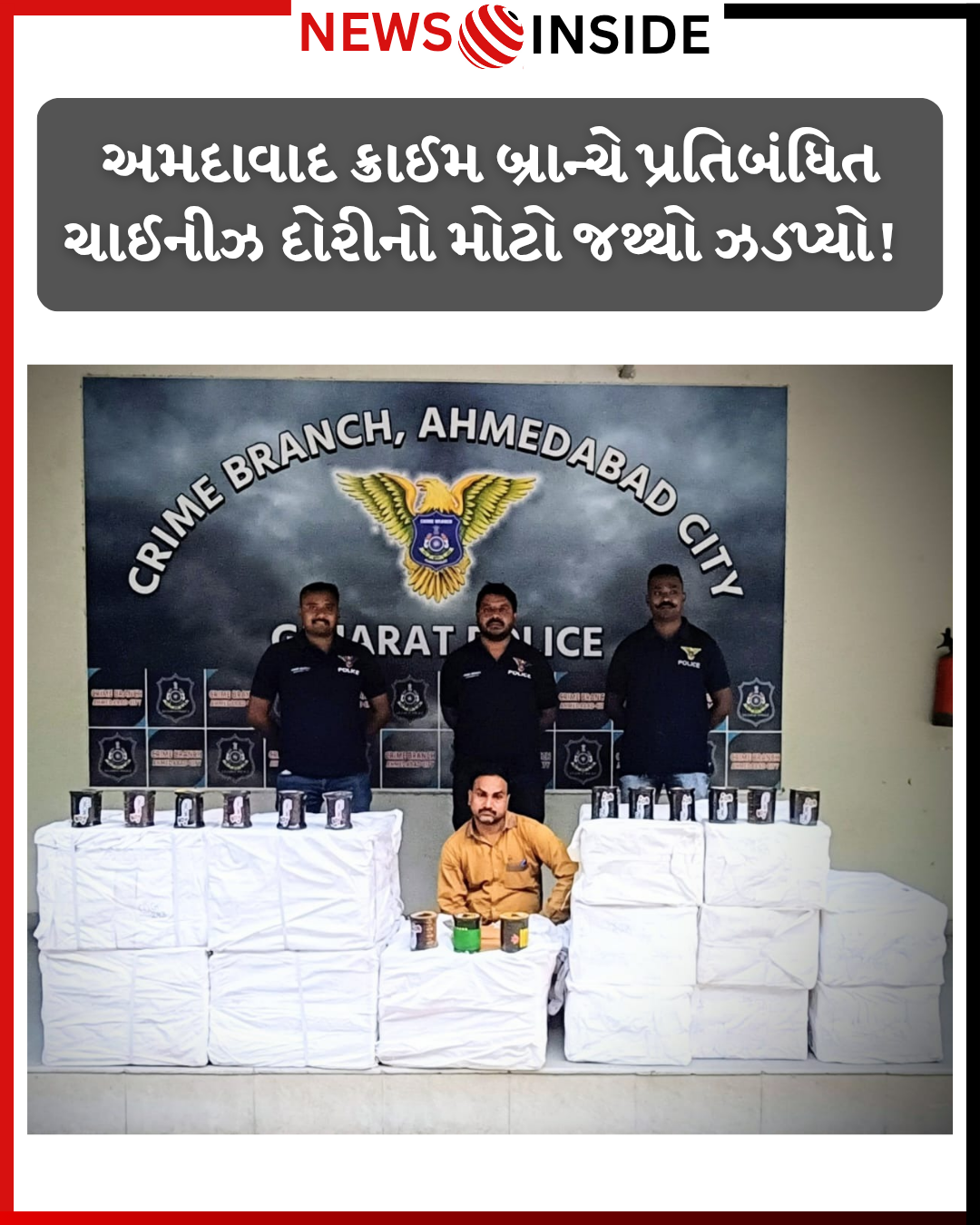 અમદાવાદ: આગામી ઉત્તરાયણ તહેવારને ધ્યાનમાં રાખીને, અમદાવાદ શહેર ક્રાઈમ બ્રાન્ચે એક મોટી કાર્યવાહી કરી છે. શહેર પોલીસે પ્રતિબંધિત ચાઈનીઝ દોરી (જેને ચાઈનીઝ માંજા, ગ્લાસ કોટેડ થ્રેડ, સિન્થેટીક કોટીંગ સાથેની પ્લાસ્ટીક દોરી અથવા નાયલોન દોરી પણ કહેવાય છે) નું ઉત્પાદન, વેચાણ અને સંગ્રહ રોકવા માટે કડક પગલાં લીધા છે.