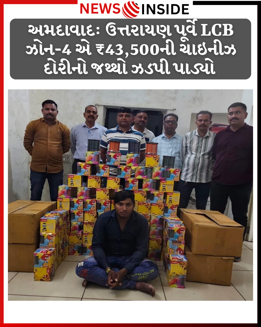 અમદાવાદ: ઉત્તરાયણના તહેવાર નજીક આવતા જ અમદાવાદ પોલીસ દ્વારા પ્રતિબંધિત ચાઇનીઝ દોરીના વેચાણ અને સંગ્રહ સામે કડક ઝુંબેશ શરૂ કરવામાં આવી છે. આ અભિયાન અંતર્ગત LCB ઝોન-4 ની ટીમે બાતમીના આધારે દરોડો પાડી કુબેરનગર વિસ્તારમાંથી ₹43,500 ની કિંમતના ચાઇનીઝ દોરીના ટેલરો સાથે એક શખ્સની ધરપકડ કરી છે.