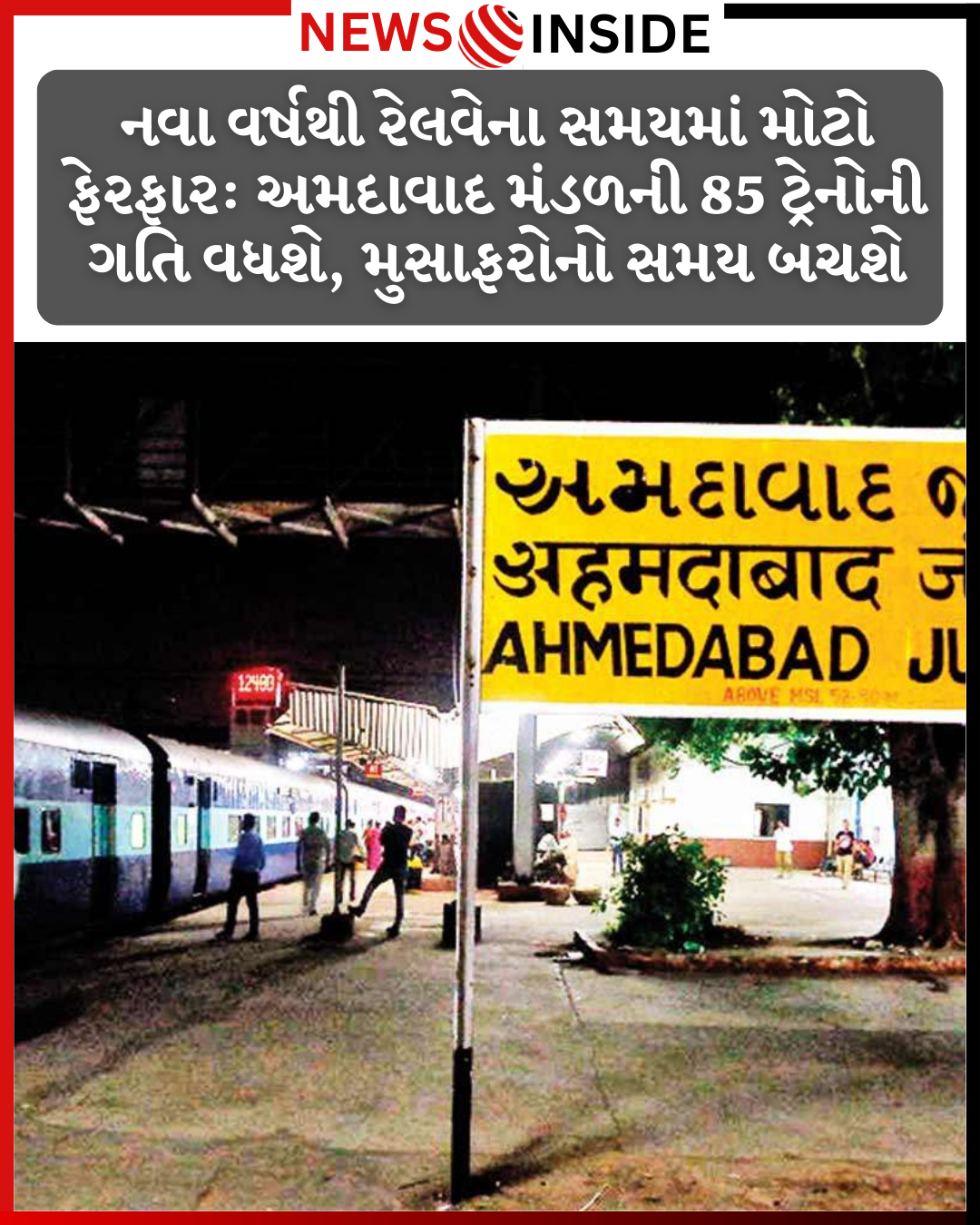 નવા વર્ષની શરૂઆત સાથે જ રેલવેના મુસાફરો માટે મહત્વના સમાચાર આવ્યા છે. પશ્ચિમ રેલવેના અમદાવાદ મંડળ દ્વારા આગામી 1 જાન્યુઆરી, 2026 થી નવું ટાઈમ ટેબલ અમલમાં મૂકવામાં આવશે. આ ફેરફારને કારણે અમદાવાદ ડિવિઝનમાંથી પસાર થતી અનેક ટ્રેનોના સમયમાં ફેરફાર કરવામાં આવ્યો છે.