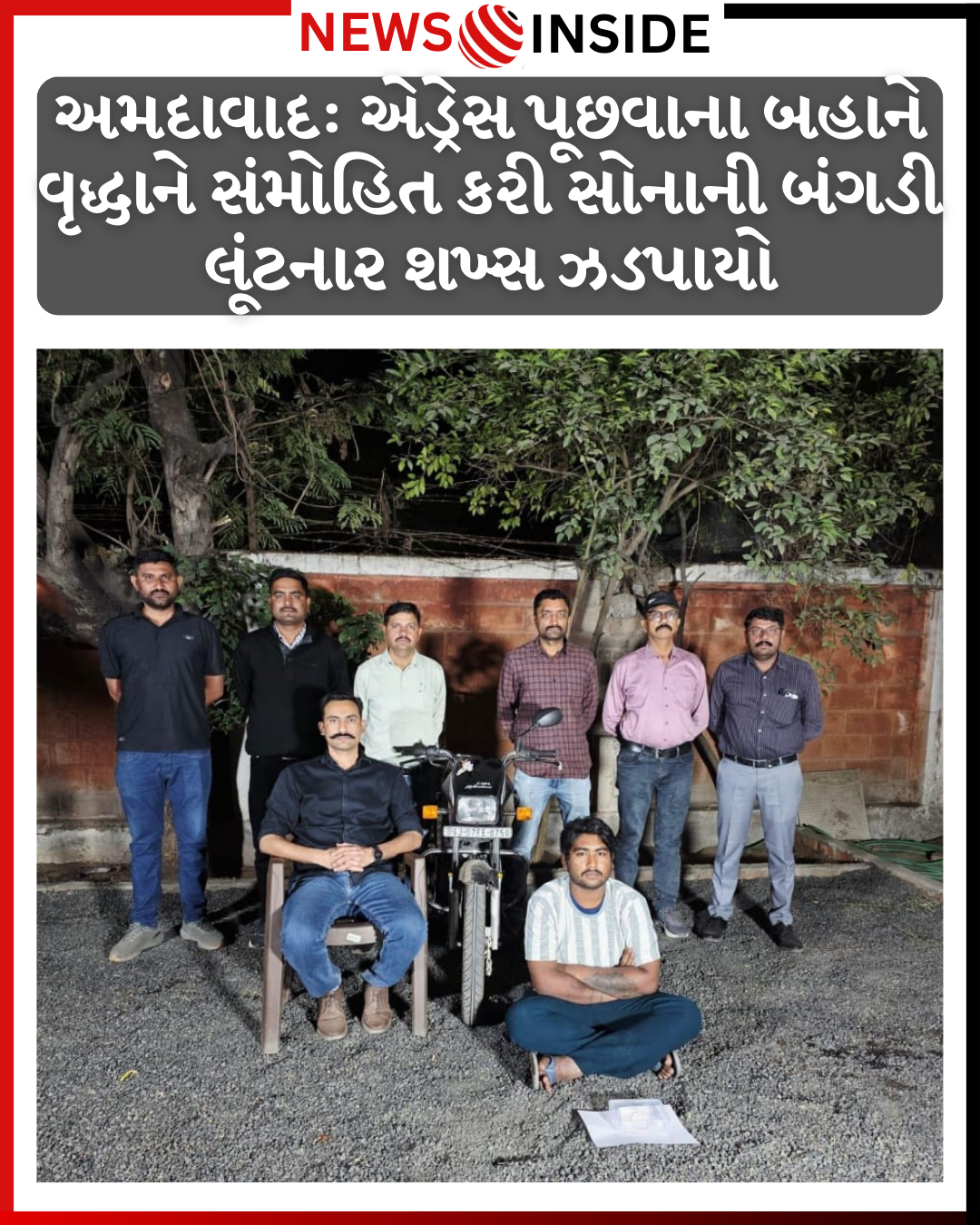 ગુનામાં વપરાયેલ મોટરસાયકલ (GJ 07-FE-0750).