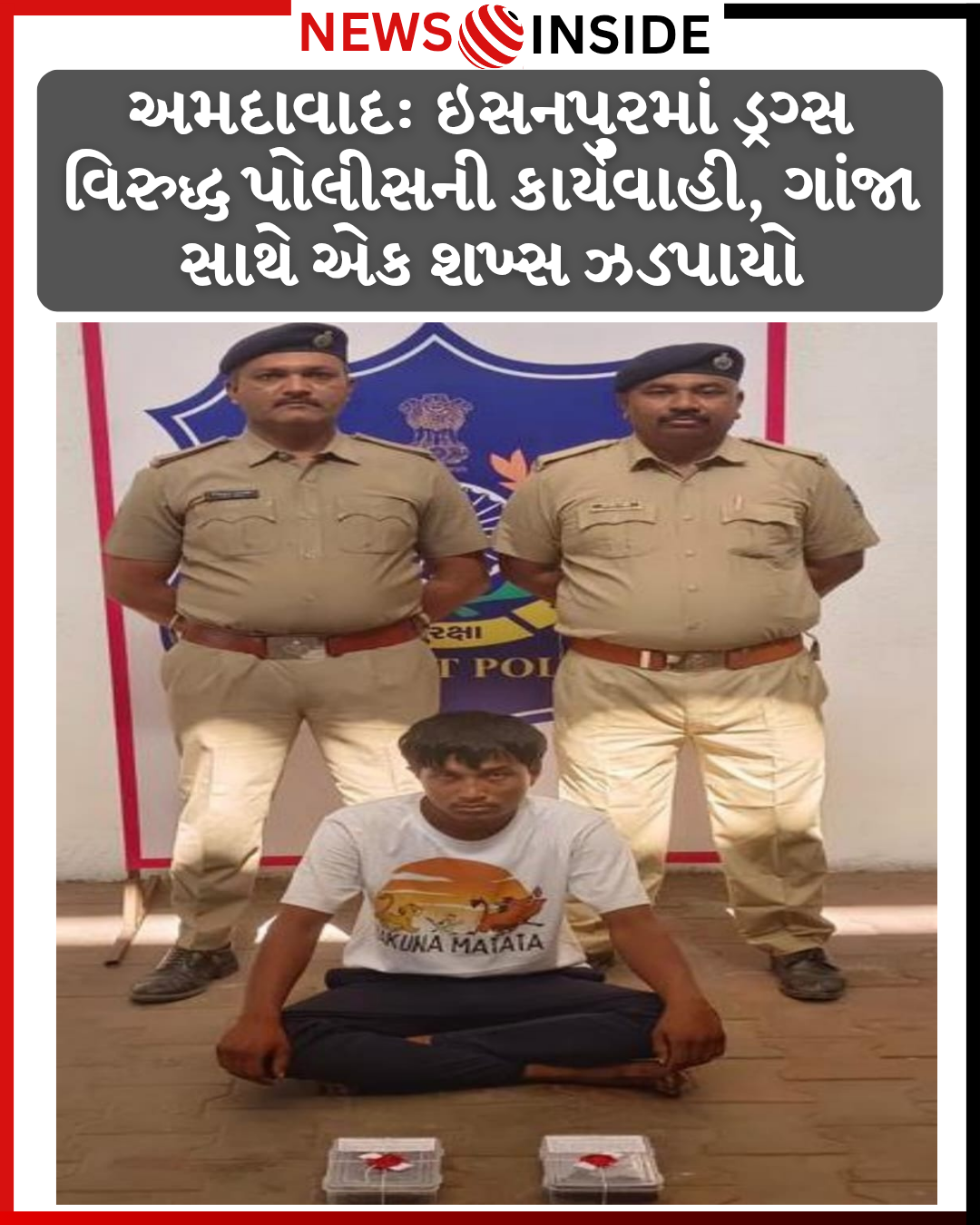 અમદાવાદ: ઇસનપુરમાં ડ્રગ્સ વિરુદ્ધ પોલીસની કાર્યવાહી, ગાંજા સાથે એક શખ્સ ઝડપાયો