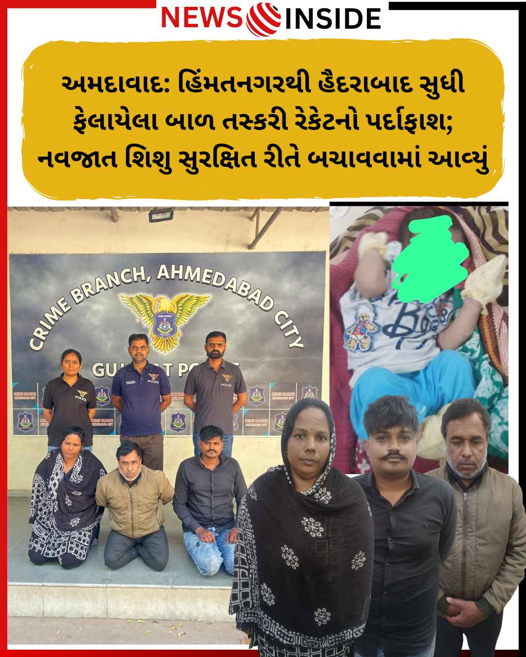 અમદાવાદ: હિંમતનગરથી હૈદરાબાદ સુધી ફેલાયેલા બાળ તસ્કરી રેકેટનો પર્દાફાશ; નવજાત શિશુ સુરક્ષિત રીતે બચાવવામાં આવ્યું