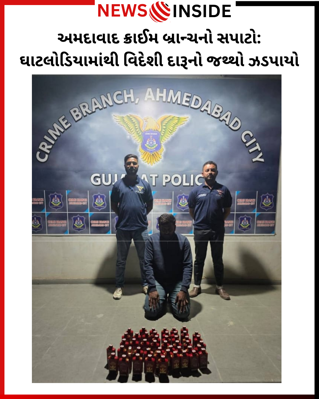 ક્રાઈમ બ્રાન્ચની ટીમને ચોક્કસ બાતમી મળી હતી કે ઘાટલોડિયા વિસ્તારમાં વિદેશી દારૂનો જથ્થો ઉતારવામાં આવ્યો છે અને તેનું વેચાણ કરવાની પેરવી ચાલી રહી છે. આ બાતમીના આધારે પોલીસે વોચ ગોઠવીને દરોડો પાડ્યો હતો. તપાસ દરમિયાન પોલીસને વિવિધ બ્રાન્ડની વિદેશી દારૂની બોટલો મળી આવી હતી.