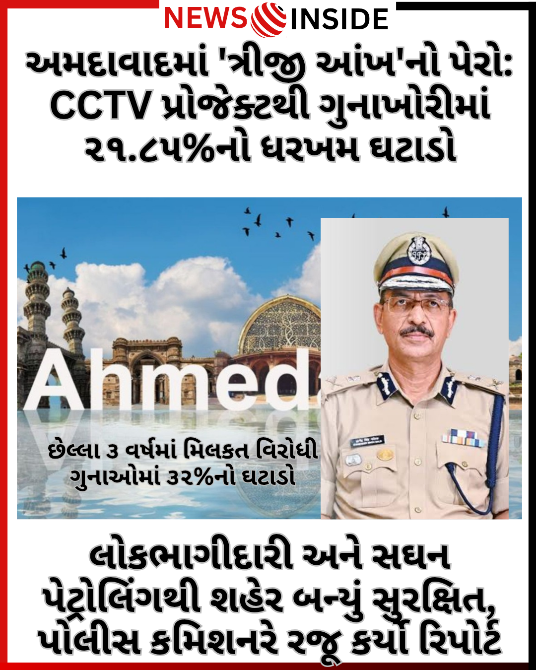 નિષ્કર્ષ: અમદાવાદ પોલીસ કમિશનરના જણાવ્યા મુજબ, સીસીટીવી નેટવર્કનું વિસ્તરણ અને ગુનેગારો સામે લેવાયેલા કડક પગલાંને કારણે શહેરમાં કાયદો અને વ્યવસ્થાની સ્થિતિ અત્યંત મજબૂત બની છે.