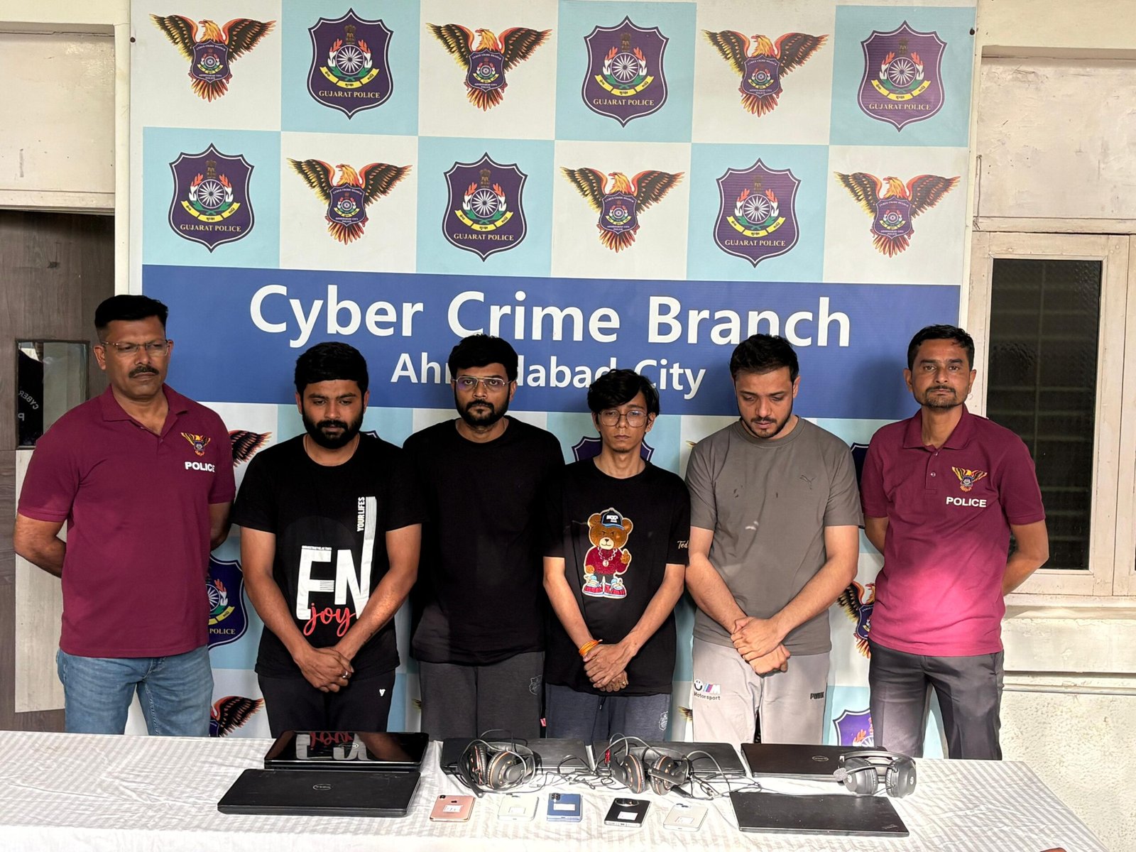 અમદાવાદ: શહેરમાં ગેરકાયદેસર પ્રવૃત્તિઓ ડામવા માટે પોલીસ કમિશનર જી.એસ. મલીક અને ક્રાઈમ બ્રાંચના ઉચ્ચ અધિકારીઓના માર્ગદર્શન હેઠળ અમદાવાદ સાયબર ક્રાઈમ દ્વારા મોટી સફળતા મેળવવામાં આવી છે. ચાંદખેડા વિસ્તારમાં રેસીડેન્શિયલ મકાનમાંથી વિદેશી નાગરિકોને શિકાર બનાવતા એક હાઈટેક કોલ સેન્ટર પર દરોડો પાડી ૪ શખ્સોની ધરપકડ કરવામાં આવી છે.