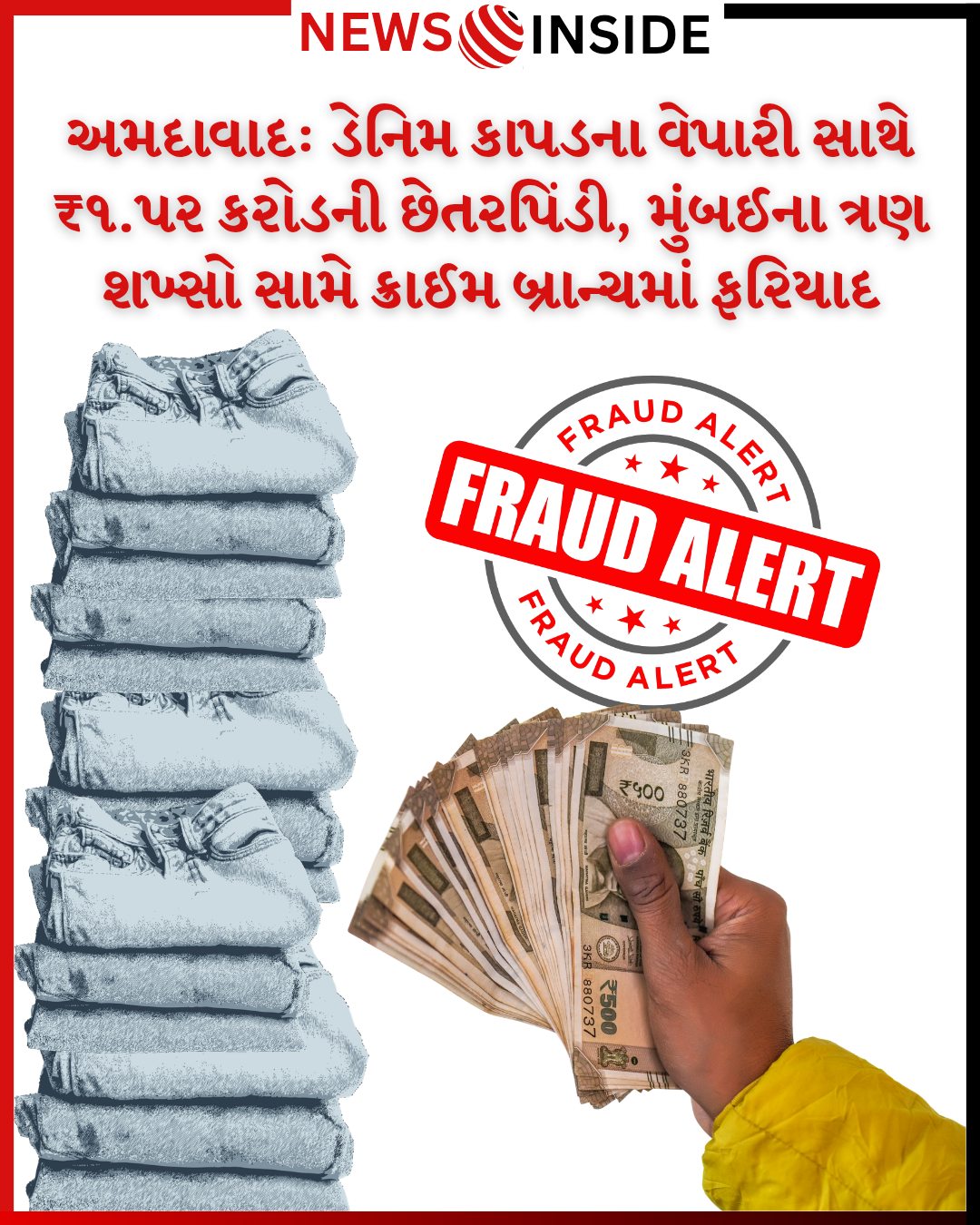 ફરિયાદ મુજબ, ઇસનપુરની માયા રોહીદાસ સોસાયટીમાં રહેતા ૪૨ વર્ષીય હર્ષદભાઈ પરમાર નારોલ શાહવાડી ખાતે પોતાની ઓફિસ ધરાવે છે. તેમની ફર્મમાંથી મુંબઈના વેપારીઓએ વિશ્વાસ કેળવીને મોટી માત્રામાં ડેનિમ કાપડની ખરીદી કરી હતી, પરંતુ તેનું પેમેન્ટ ચૂકવવામાં ઠાગાઠૈયા કર્યા હતા.