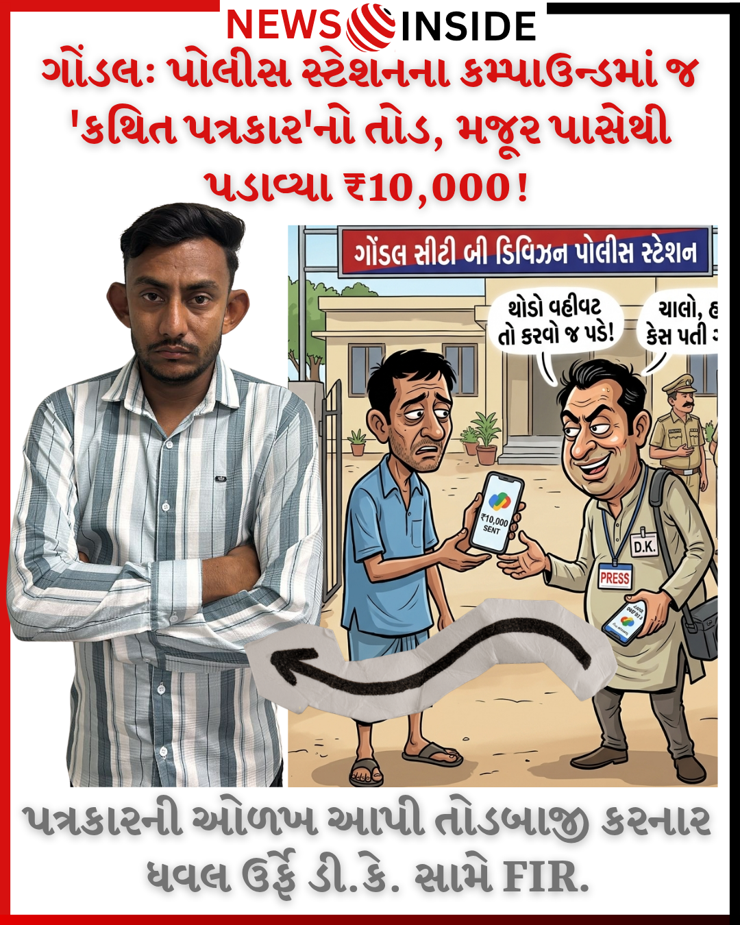 ​ગોંડલ: પોલીસ સ્ટેશનના કમ્પાઉન્ડમાં જ ‘કથિત પત્રકાર’નો તોડ, મજૂર પાસેથી પડાવ્યા ₹10,000!