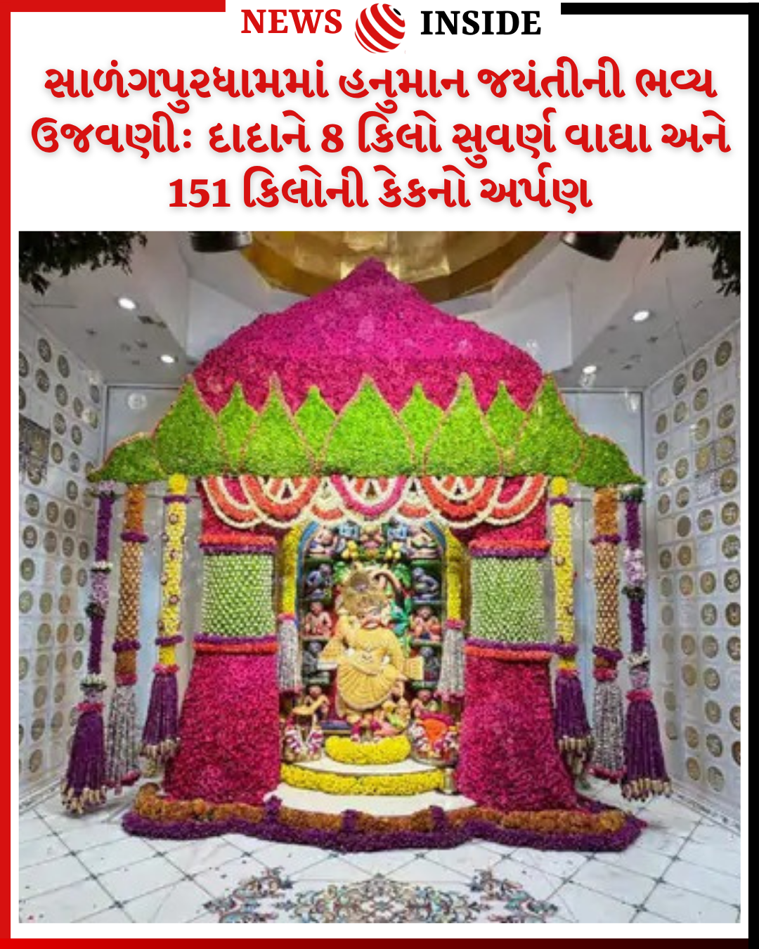 સાળંગપુરધામમાં હનુમાન જયંતીની ભવ્ય ઉજવણી: દાદાને 8 કિલો સુવર્ણ વાઘા અને 151 કિલોની કેકનો અર્પણ