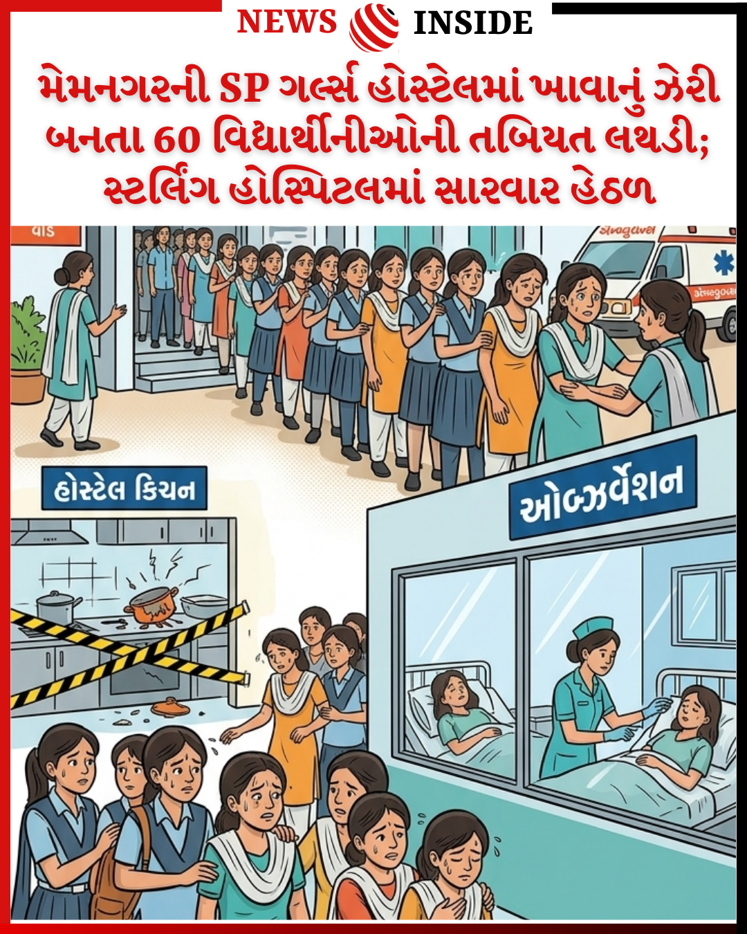 મેમનગરની SP ગર્લ્સ હોસ્ટેલમાં ખાવાનું ઝેરી બનતા 60 વિદ્યાર્થીનીઓની તબિયત લથડી; સ્ટર્લિંગ હોસ્પિટલમાં સારવાર હેઠળ