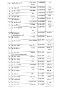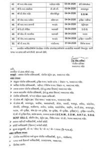 | અધિકારીનું નામ | ક્યાંથી આવ્યા/હાલનું સ્થાન | નવી નિમણૂક (પો.સ્ટે./શાખા) |