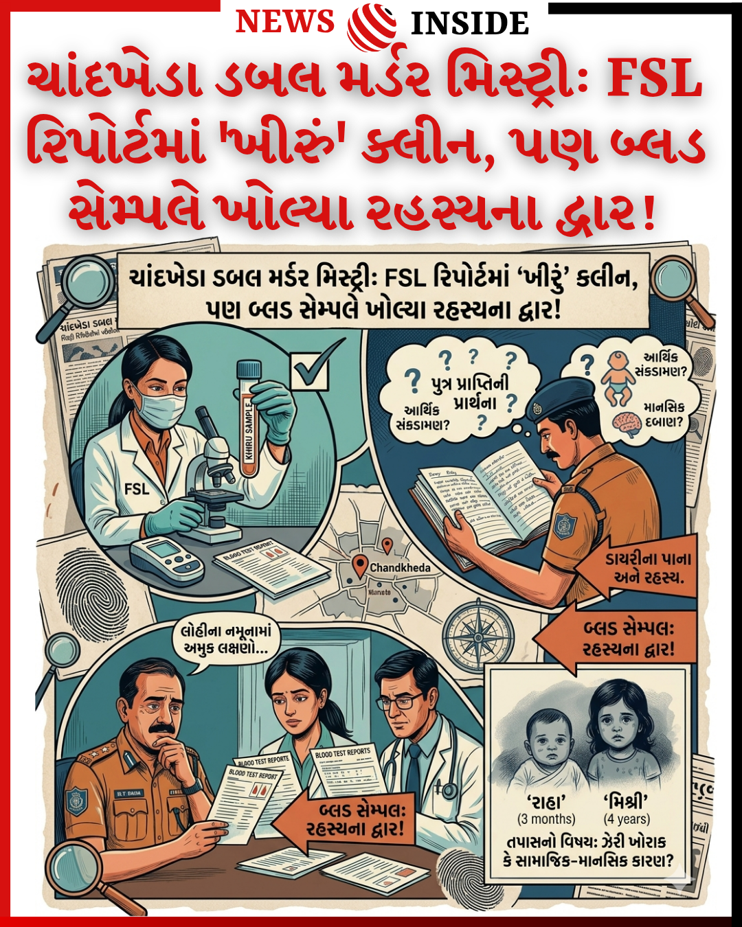 ACP ડી. વી. રાણાના જણાવ્યા અનુસાર, બાળકીઓના માતા-પિતાના બ્લડ રિપોર્ટમાં અમુક લક્ષણો (Symptoms) જોવા મળ્યા છે. પોલીસ હવે એ એન્ગલથી તપાસ કરી રહી છે કે શું આ આર્થિક સંકડામણ, પારિવારિક ઝઘડા કે અન્ય કોઈ માનસિક દબાણનું પરિણામ તો નથી ને?